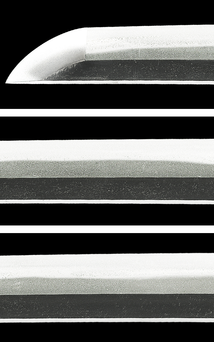 総体的に良く詰んだ肥前小糠肌、広直刃湾れ調の刃は、刃縁匂い深々として明るく冴え、刃中小足、葉が良く入っています。