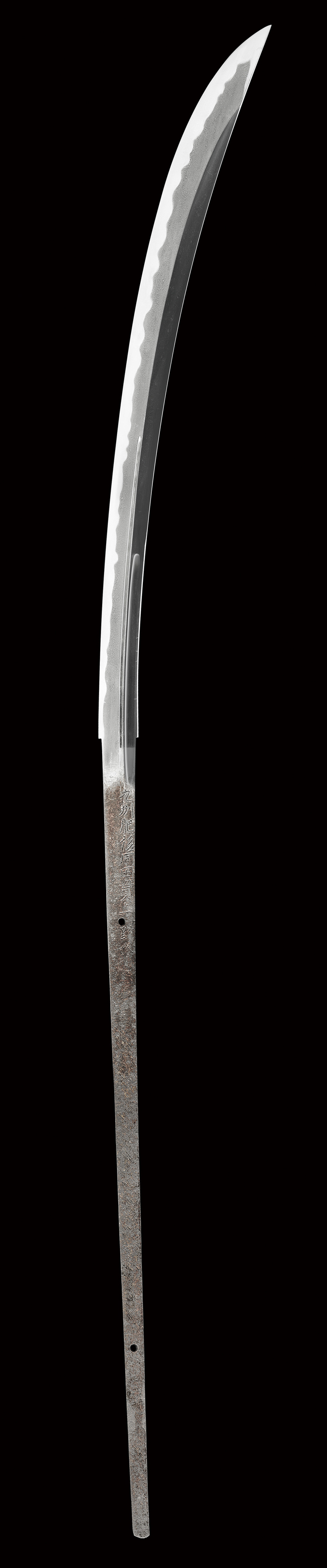 これまで本誌では、同田貫一門の刀剣類を二百振り程掲載してきましたが、上野介銘の薙刀は、これで二振り目、因みに槍は三振り、切付銘が刻されていたものは十振り程です。