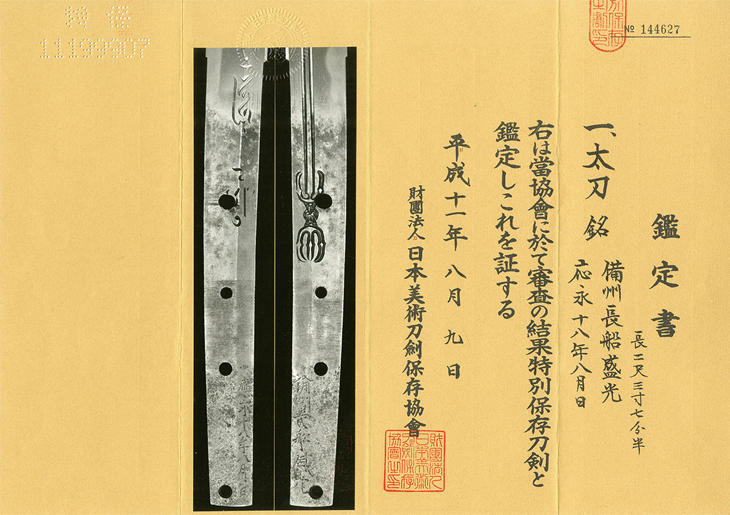 特別保存刀剣鑑定書付き
