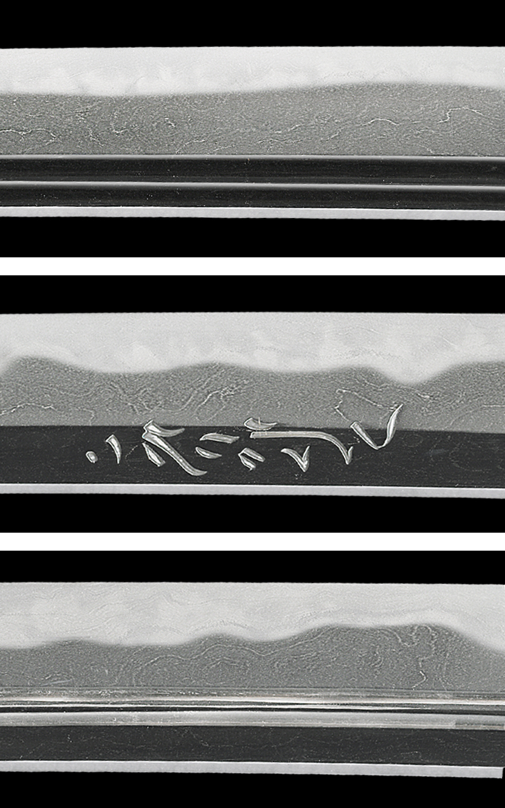 表裏には、二筋樋、梵字、三鈷柄附き剣、棒樋に爪の彫りがあり、一部茎に掛かるなど、如何にも応永備前らしい生ぶ彫りが残されています。これで生ぶなら大変なことです。