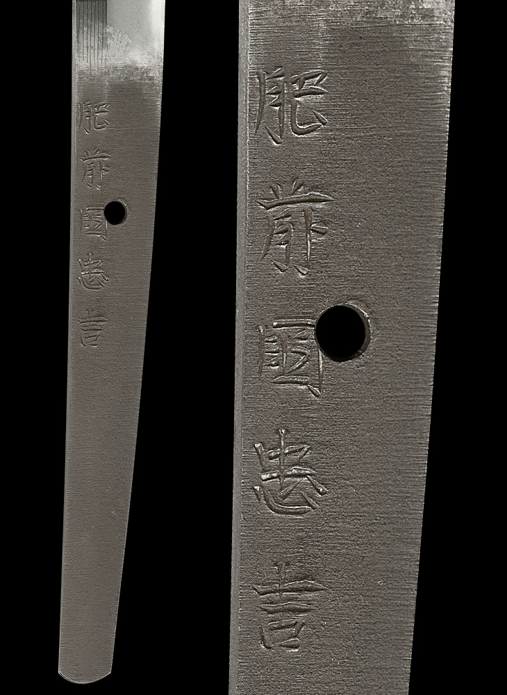 昭和四十七年(一九七二)の認定書が付いており、『肥前国忠吉(八代)』と極めていますが、銘は厳しいでしょう。一見、上手に切っていますが、仔細に見ると、鏨の向きなど、普段の銘とは異なります。