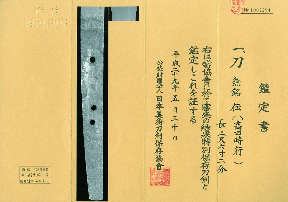 保存刀剣鑑定書付き