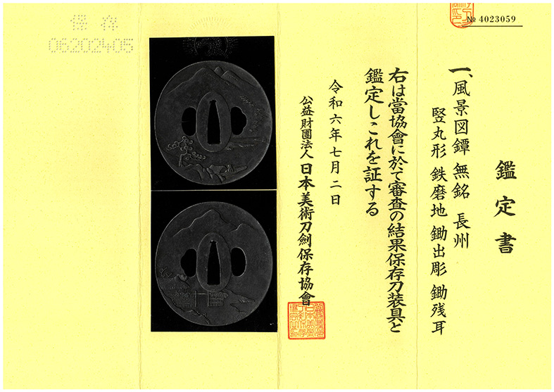 拵え付き(鐔に保存刀装具鑑定書付き)