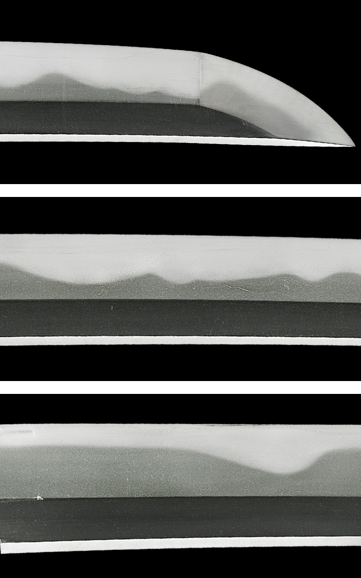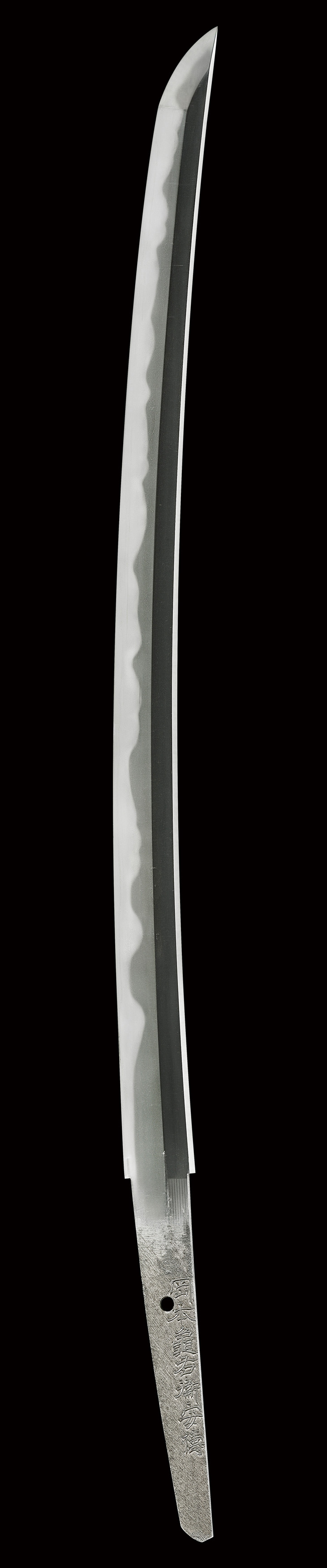 本作は、岡本亀右衛(門)安儔とあるように、貴重な俗名入り年紀作、『秊』は『年』の異体字、『於摂陽造』とあることから、摂津(大坂)打ちの濤瀾風互の目乱れを焼いた典型作です。