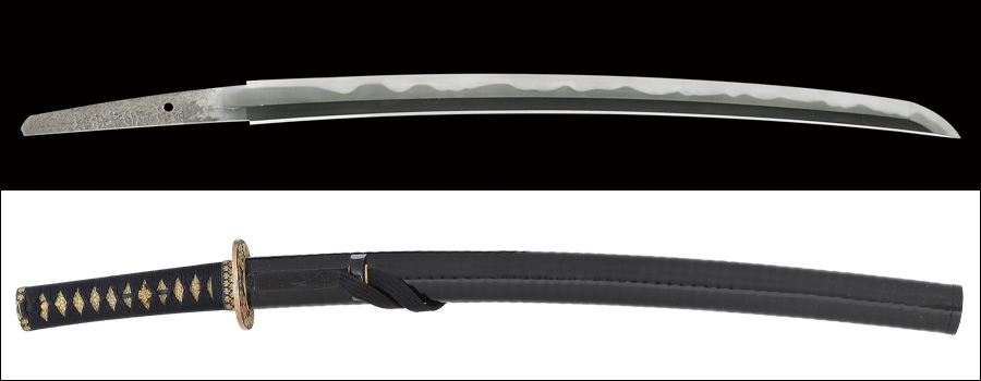 少し地に緩みもありますが、総体的に良く詰んだ地鉄に、尾崎助隆一門伝統の覇気溢れる濤瀾風互の目乱れを巧みに焼いており、特別保存刀剣及び日本刀剣保存会優秀作鑑定書付きです。