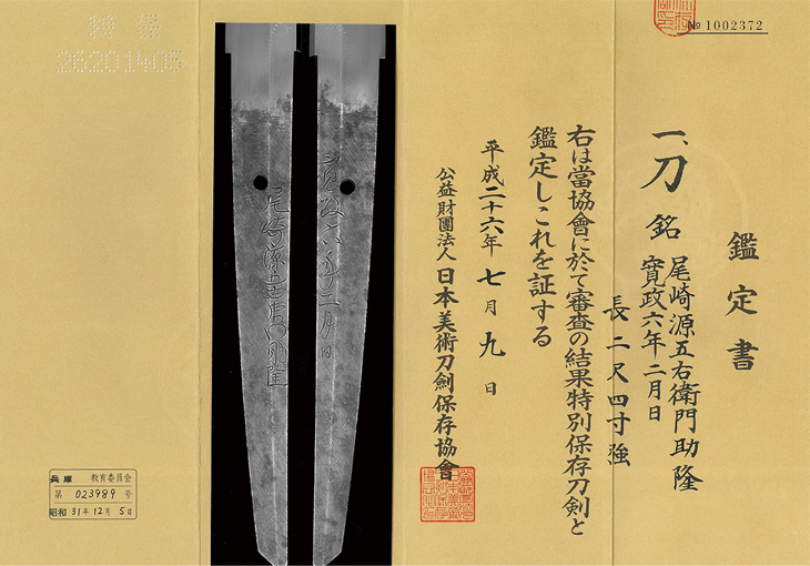 特別保存刀剣鑑定書付き