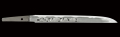 本作は、生ぶ無銘の切り刃造り短刀、面白いのは、やや剥落していますが、茎棟に金象嵌銘で『貞国(肥後大掾)』と極めがあり、鑑定書でもそれを認めています。