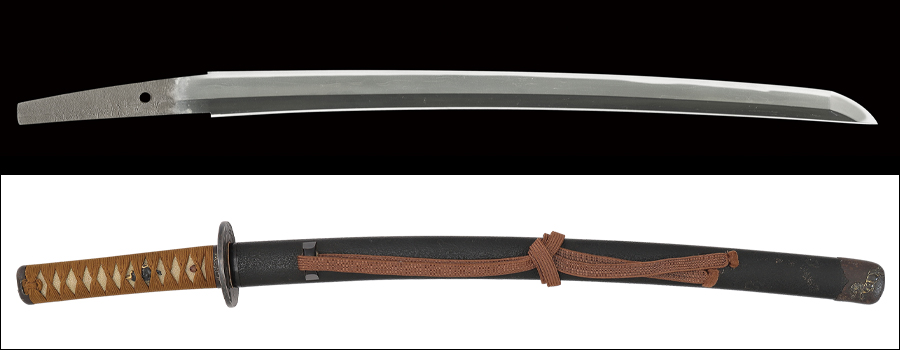 本作は、寸法一尺四寸九分弱、反りやや浅め、鎬高く、均整の取れたスタイル、年紀はありませんが、その銘振りから紀州へ移った元和五年以降の後期作、いわゆる『紀州打ち』であることが分かります。 特別保存(令和七年)、特別貴重(昭和四十五年)、藤代義雄鑑定書(昭和十六年)が付属しており、加えて『藤代大鑑』でお馴染み、『日本刀工辞典(新刀篇)(藤代義雄著)』所載品です。壮年期に比して、鏨が弱く、細くなっていることから、同工最晩年の銘として所載されています。
