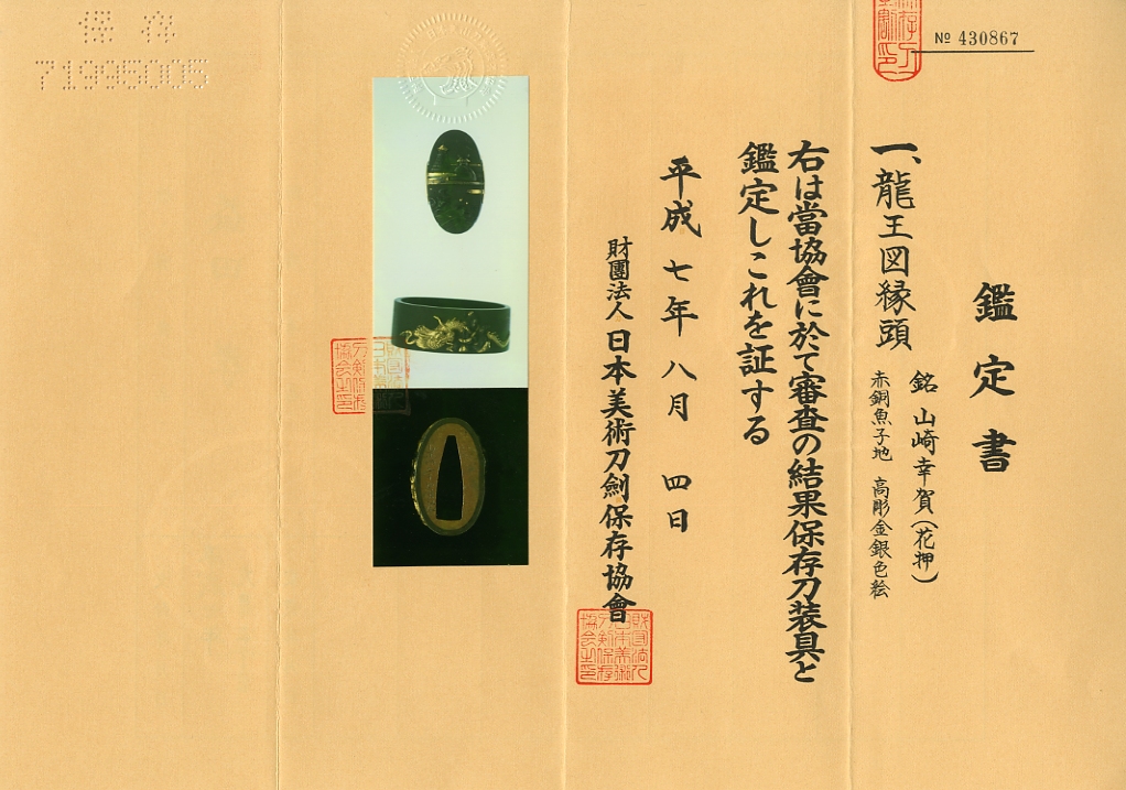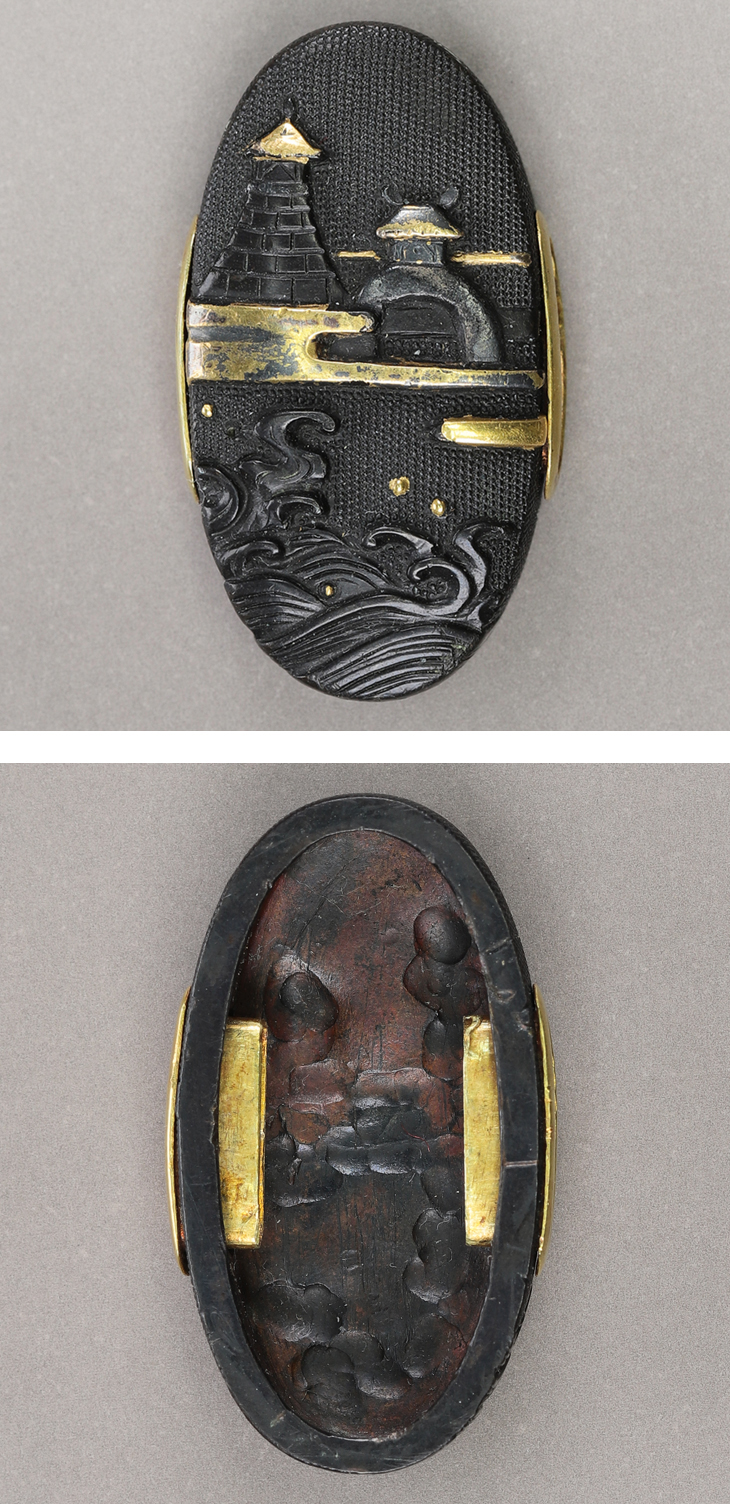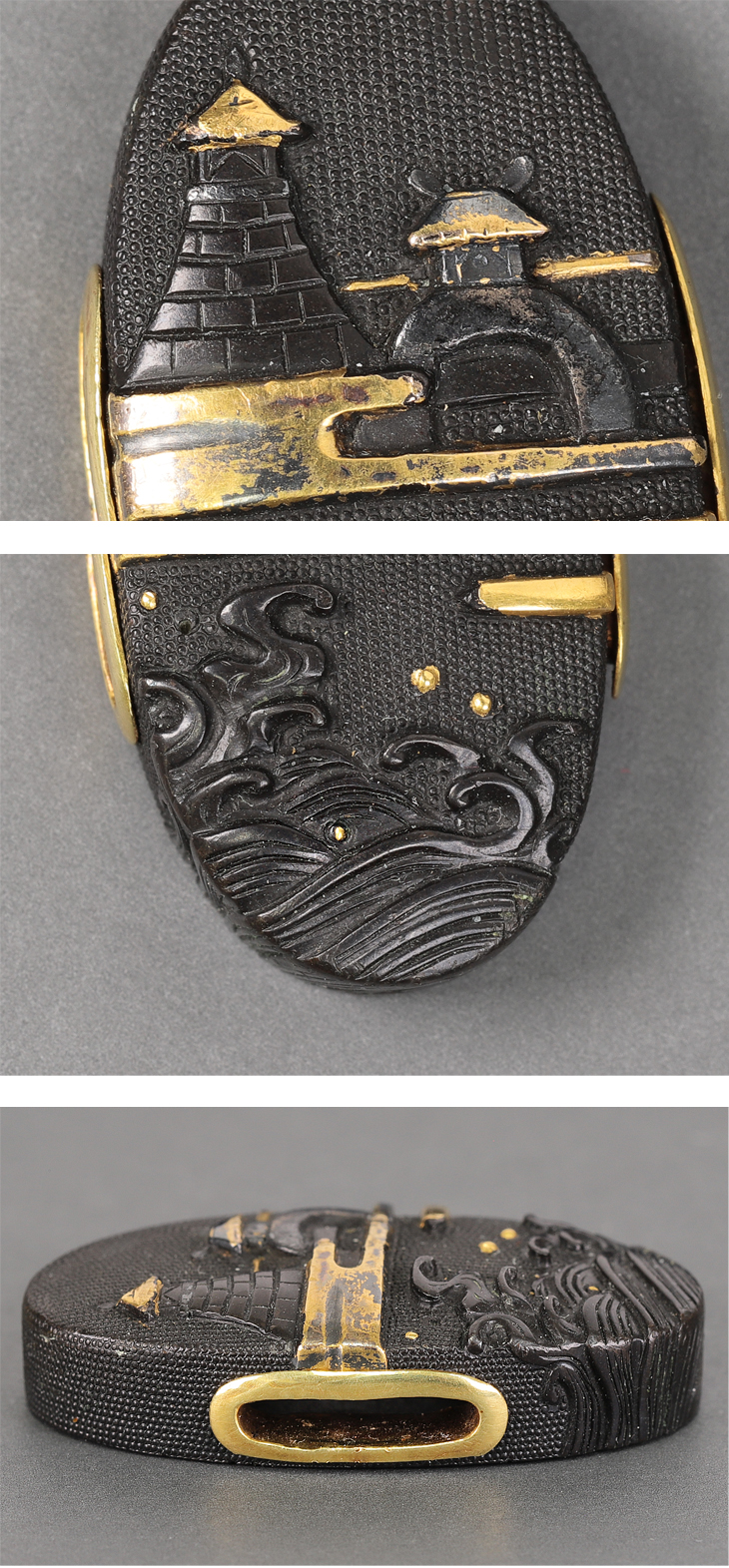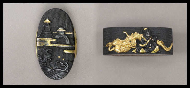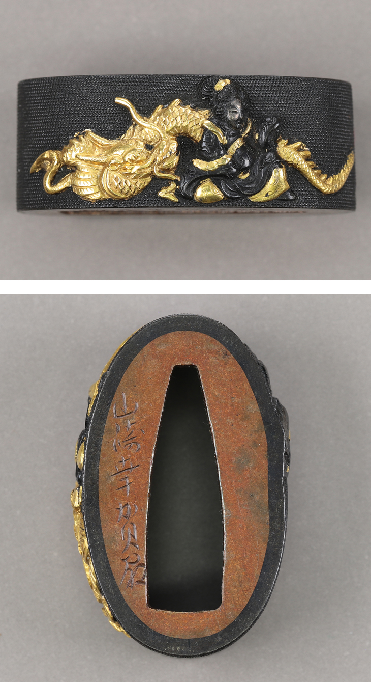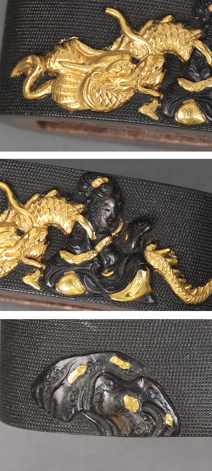 頭には荒波と竜宮城、縁には龍と善女が描かれています。