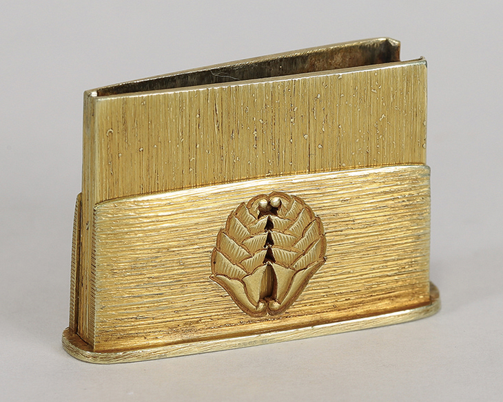 因みに、杏葉紋は、馬具や鎧の肩当てに付ける装飾の杏葉をモチーフとした家紋。装飾が杏(あんず)の葉に似ていることから、この呼び名が付いたと云われます。数ある杏葉紋の中でも、葉脈の如く縦線が沢山入ったものが『鍋島杏葉紋』で、 一見、『抱き茗荷(みょうが)紋』と形が似ているため、お間違いのないように。