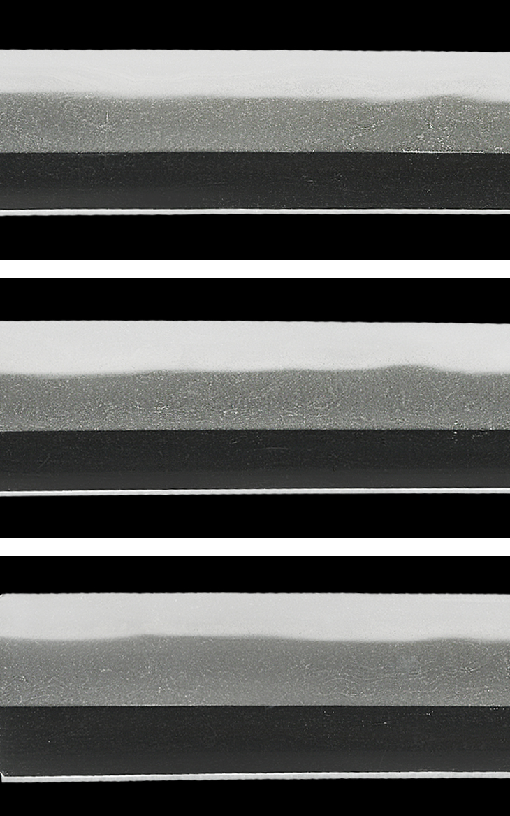 図譜には、『この刀は、姿態、地刃共に大和気質が強く現れている。特に、刃中の働きが盛んで地刃も良く沸付くなど、覇気が表出し、大和物でも当麻に最も擬せられるものである。緩みのない肌合いが優れ、焼き刃の豊かな景色など、同派の優れた出来映えを示した一口である。』とあるように、大和伝と相州伝の良いとこ取りが当麻最大の見所、本作はそれが顕現されており、焼き刃も元から先まですこぶる健全です。
