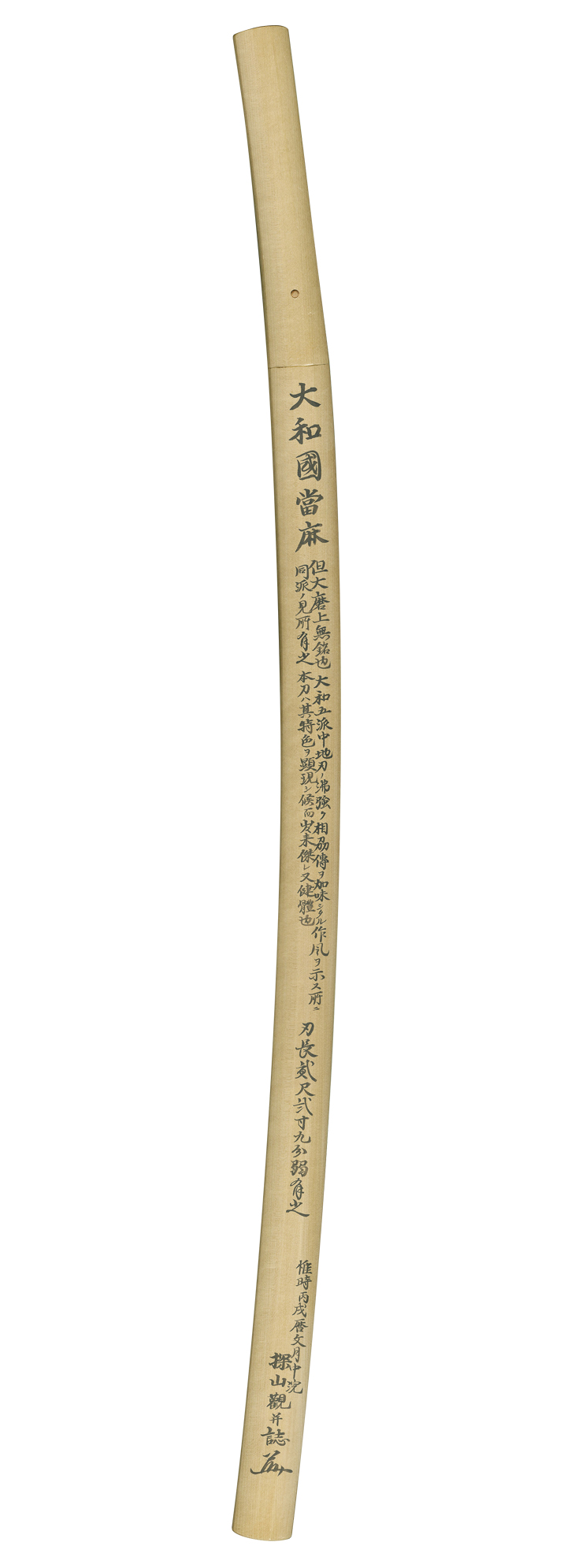 本作は、令和五年(二〇二三)、第六十九回の重要刀剣指定品、寸法二尺二寸九分、反りやや浅め、上品なスタイル、鎌倉最末期~南北朝初期に掛けての作と鑑せられます。