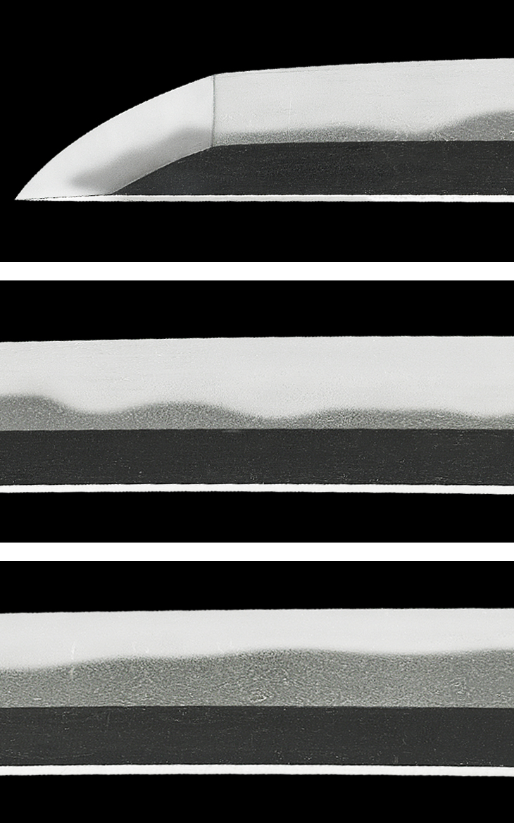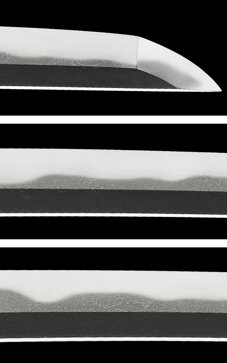 作風は、頭の丸い互の目、互の目丁子刃が主体で、湾れ、矢筈刃、箱刃、尖り刃が交じり、刃縁の柔らかく締まった作が多く、短刀には、来写しの直刃が多く見られます。