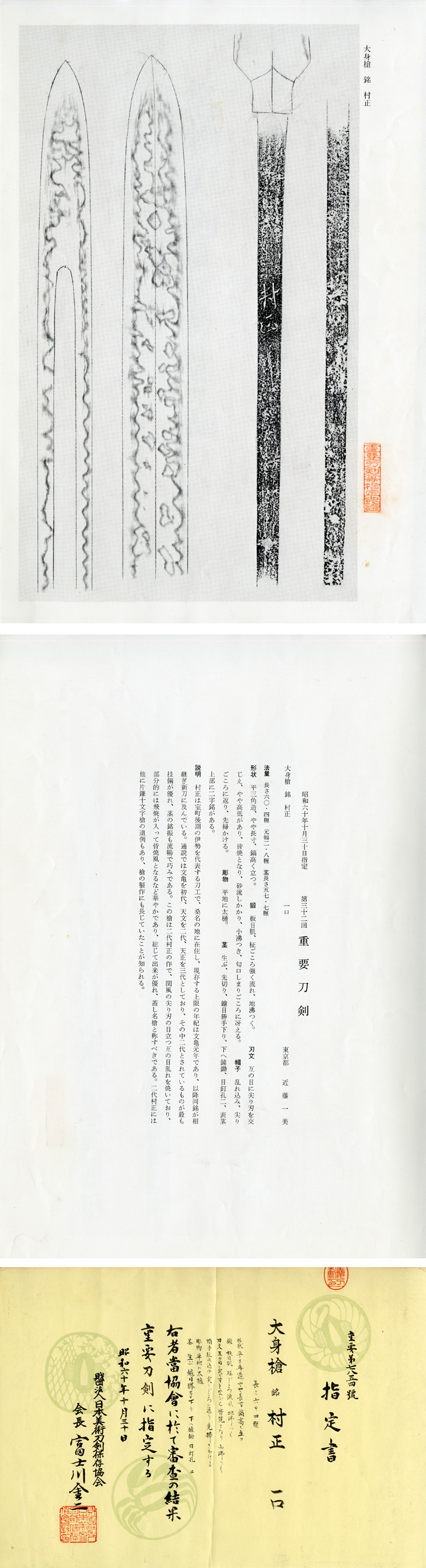 本作は、大変貴重な村正の大身槍、昭和六十年(一九八五)、第三十二回の重要刀剣指定品です。