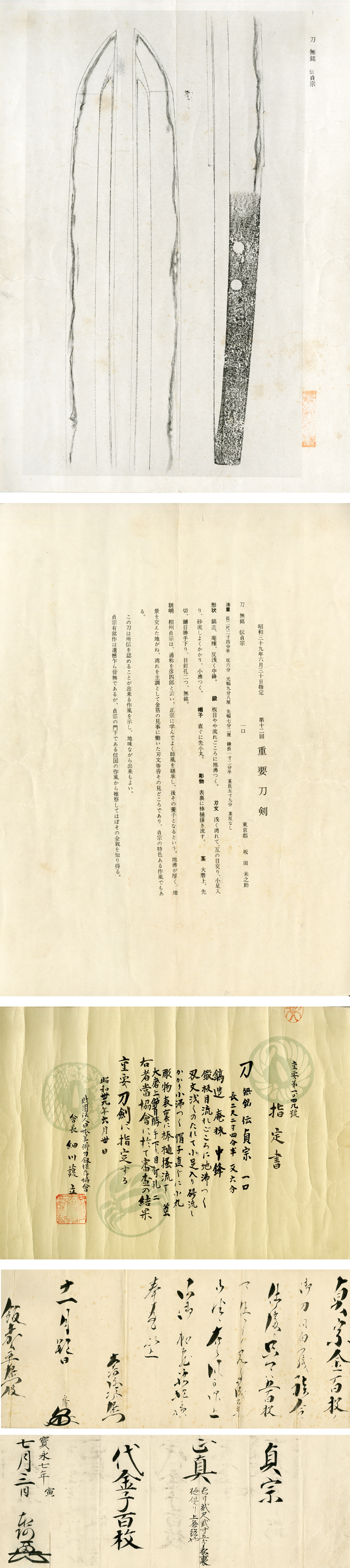 本作は、昭和三十九年(一九六四)、第十二回重要刀剣指定品で、『伝貞宗』と極められています。