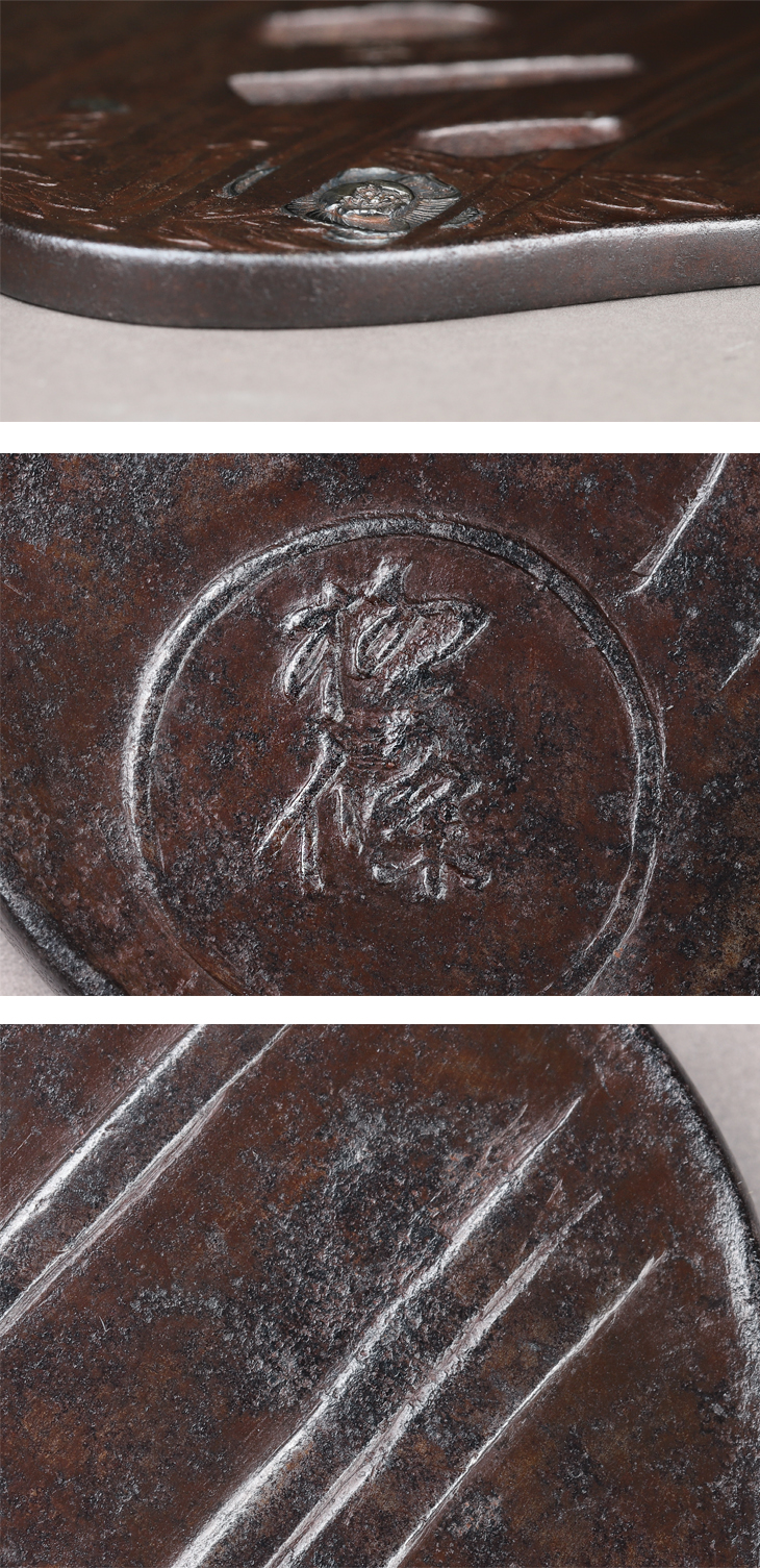 鉄槌目地変わり形 鋤出彫 銀象嵌 打返耳