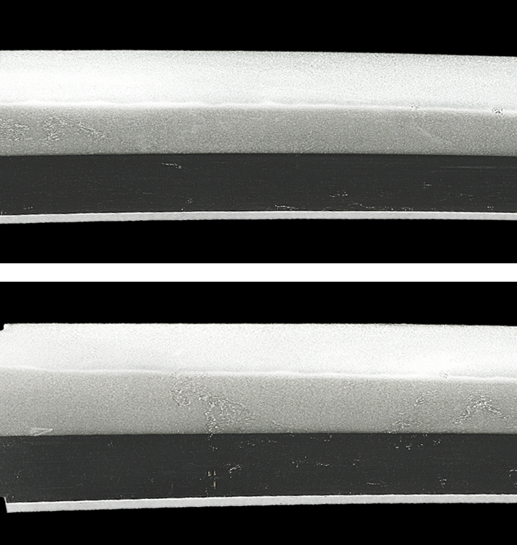 出来は、末備前風の典型的な広直刃、刃縁が明るくピーンと締まり、刃中小足、小互の目足、葉が良く入っています。