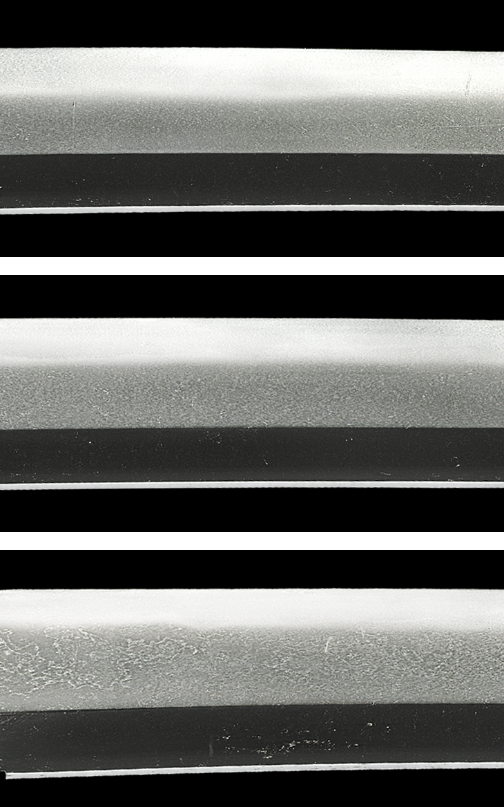 精良な地鉄、湾れ調の刃取りで、小互の目足頻りに入る刃は、刃縁良く沸付いて匂い深く明るく冴え、所々金筋、砂流し掛かるなど、同派の典型とも言える作風です。