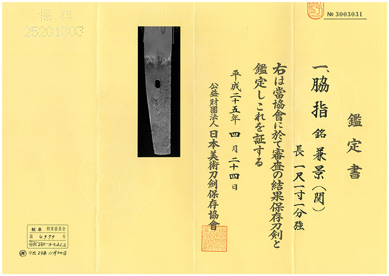 商品番号:Q-085 脇差し 兼景 保存刀剣鑑定書付き