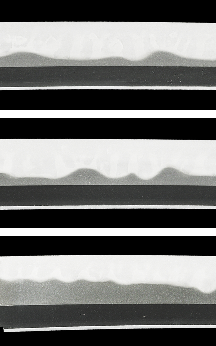 互の目丁子乱れ主体の刃は、大房丁子、重花丁子、小互の目を交え、刃縁匂い勝ちに明るく締まり、刃中丁子足良く入るなど、盛期の一文字丁子を忠実に再現しています。