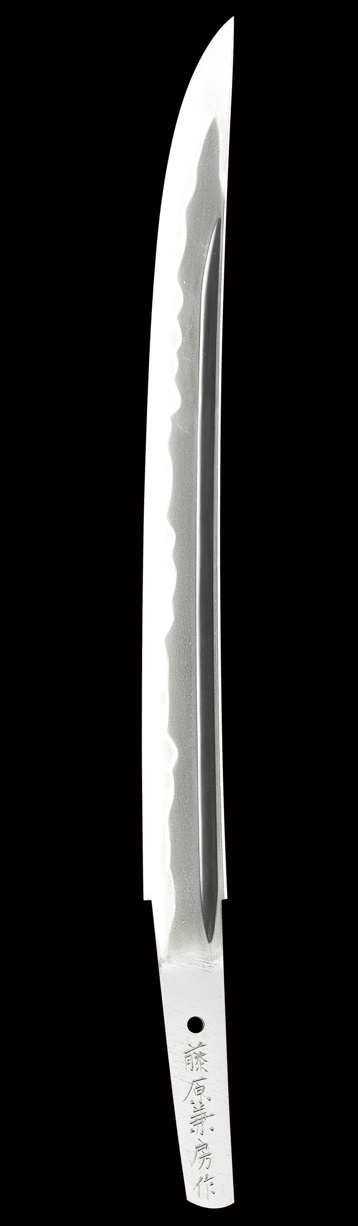 二十五代兼房は、加藤賀津雄と言い、昭和三十二年生まれ、岐阜県関市出身で、初め人間国宝月山貞一、後に父二十四代兼房に学び、昭和五十八年より、二十五代兼房を襲名しました。作風は、伝統的な美濃伝、志津風の相州伝、相伝備前、備前伝を得意としています。本作は、同工三十六歳の頃、典型的な美濃伝の乱れ刃で、明るく締まった柔らかな刃を丹念に焼いた佳品です。