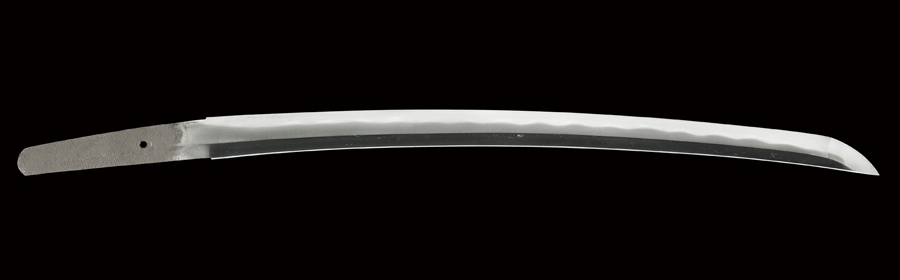 鎬造り、鎬尋常庵棟低い、中切っ先。 鍛え、板目所々流れ心に肌立ち、地沸厚く付き、地鉄良好。 刃文、互の目に小互の目、丁子風の刃、やや角張った刃を交えて、刃縁良く沸付いて明るく締まり、刃中互の目足、丁子足、葉入り、金筋、砂流し掛かる。 帽子、要研磨のため不明。 茎生ぶ、先栗尻、鑢不明。 銅に金鍍金二重ハバキ。 時代研磨。 白鞘入り。