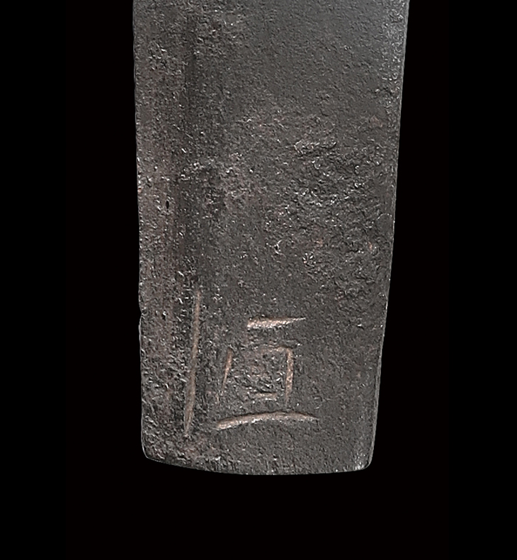 本作は、下が生ぶ穴で四寸程磨り上がっており、銘が『恒』で切れていますが、鑑定書にも但し書きがあるように、古備前恒光の希少な在銘太刀、茎尻には、古拙ながら大振りで味わい深い銘が残されています。
