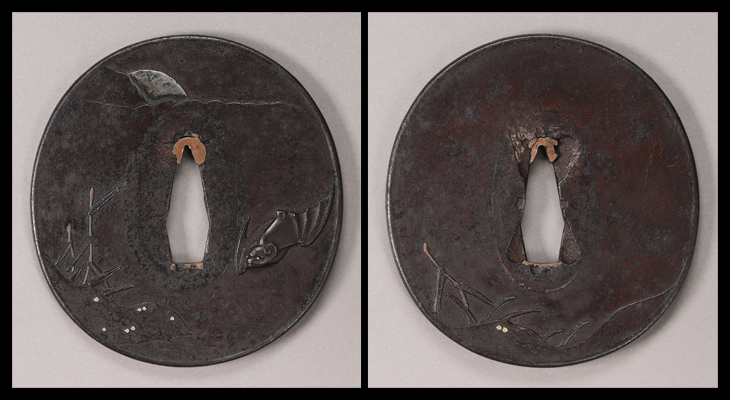 鍔:月下水辺蝙蝠図
