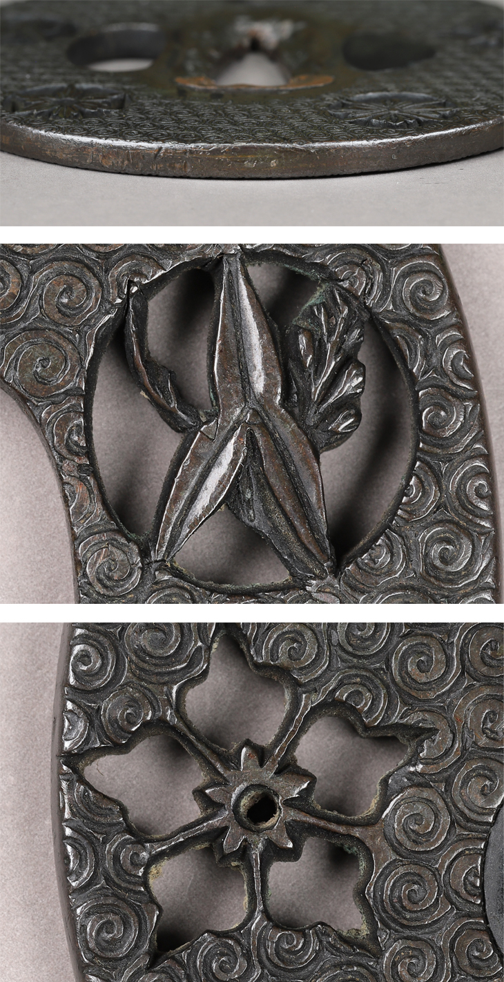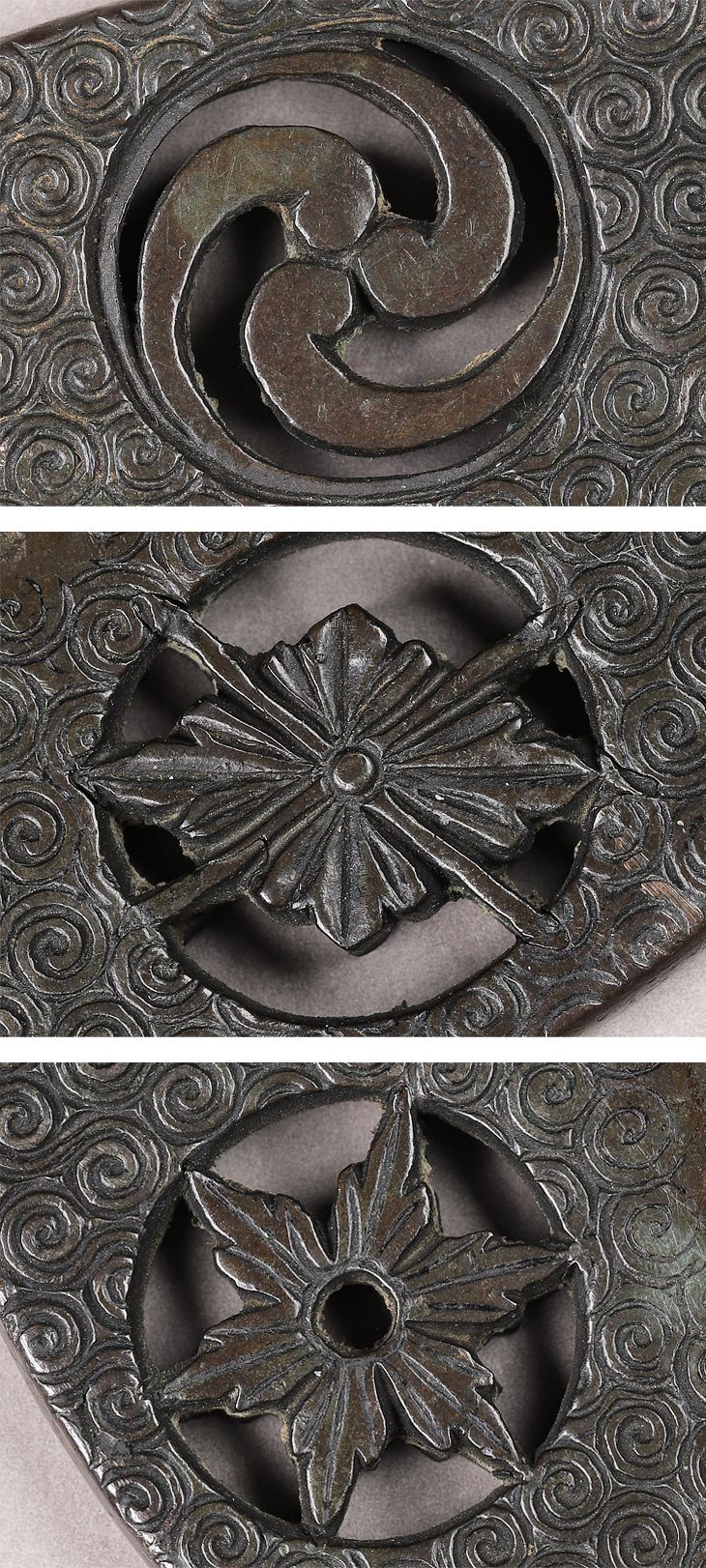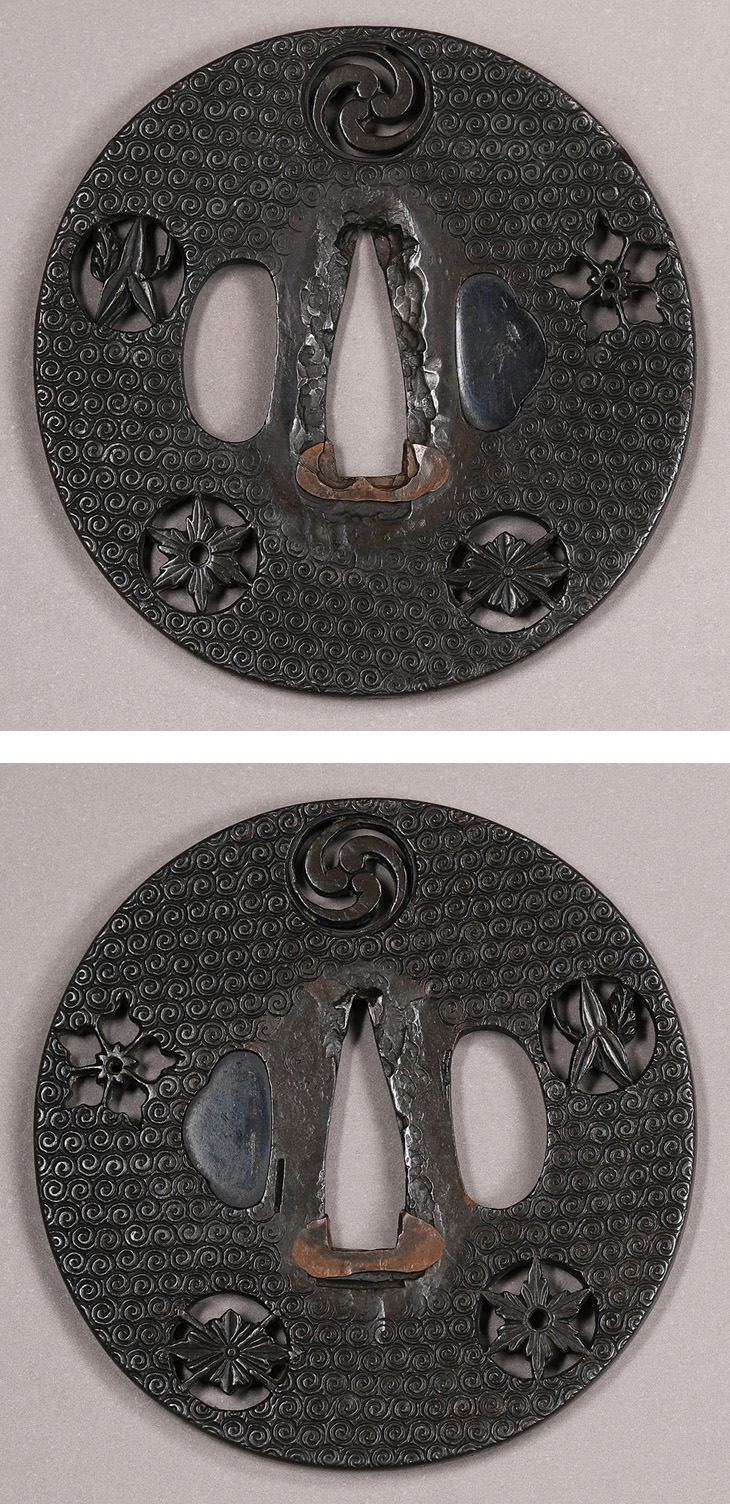 商品番号:T-1242 鍔:武鑑散透図 無銘古金工 特別保存刀装具鑑定書付き