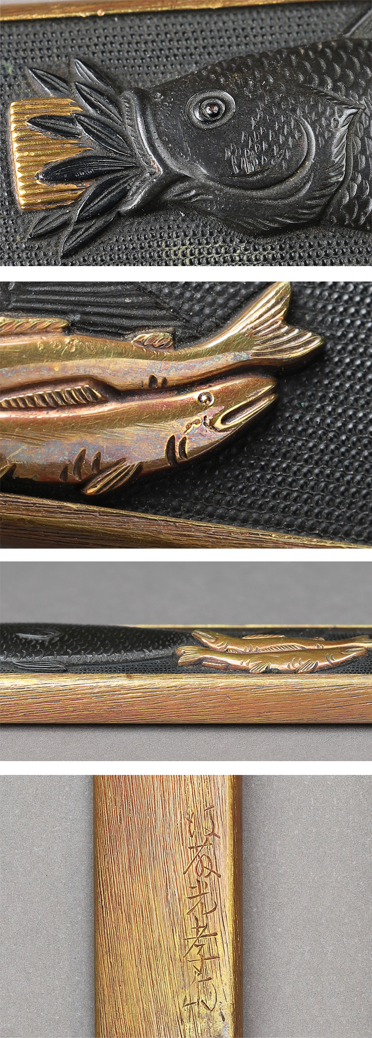 商品番号:T-1259 小柄:魚の図 銘・後藤光孝 保存刀装具鑑定書付き(紛失)