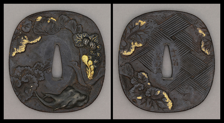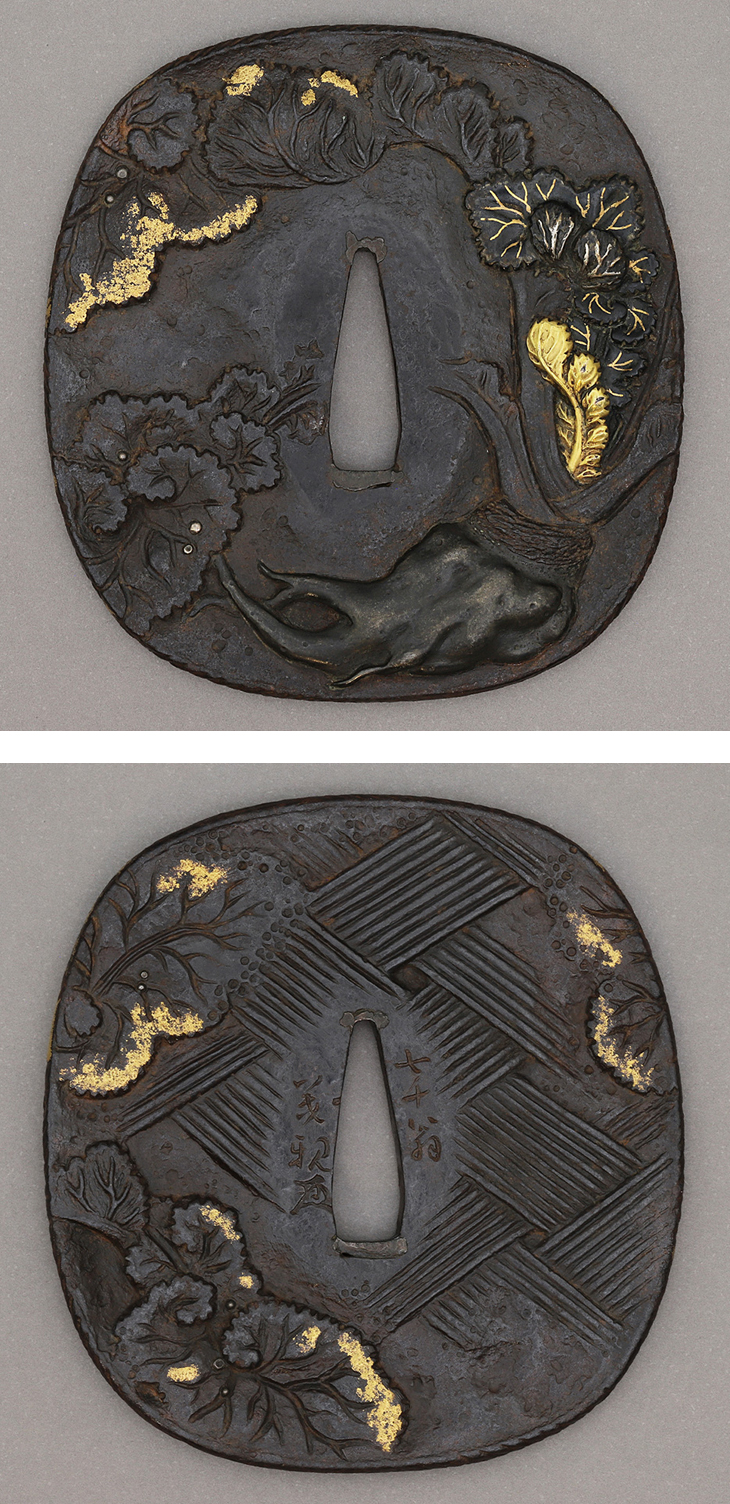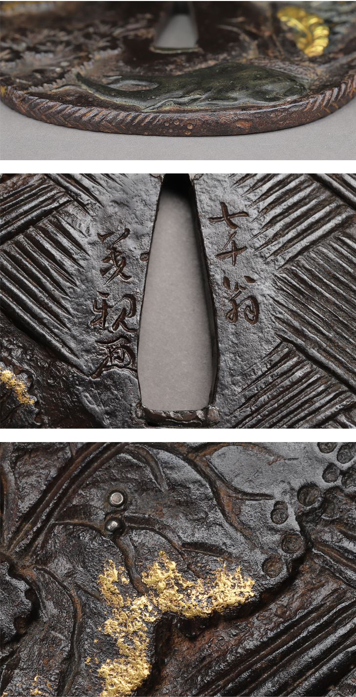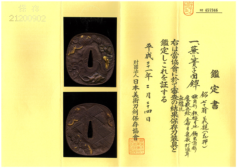 商品番号:T-1262 鍔:蕪に簀子図 銘・七十翁 義親(花押) 保存刀装具鑑定書付き