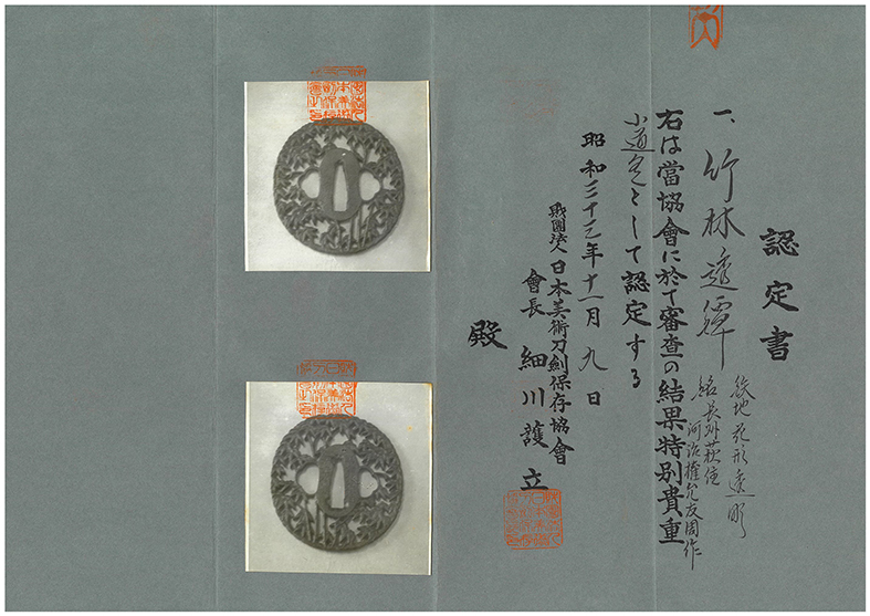 商品番号:T-1264 鍔:竹林透図 銘・長州萩住 河治權充友周作 特別貴重認定書付き