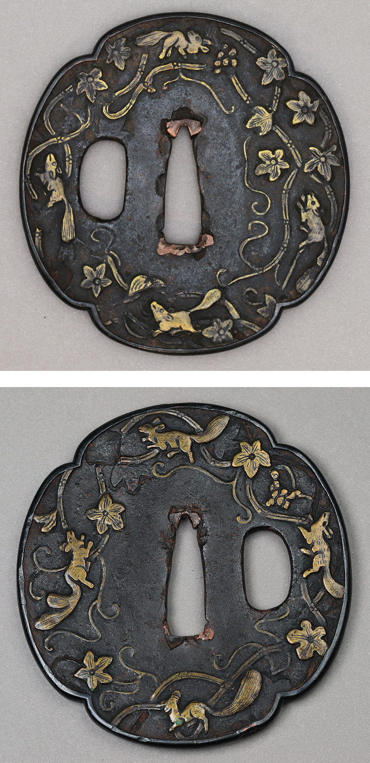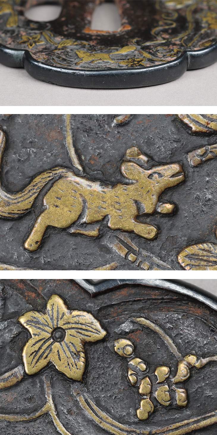 【売約済】商品番号:T-1269 鍔:葡萄栗鼠図 平安城象嵌
