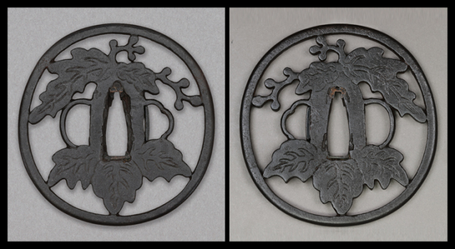 商品番号:T-1279 鍔:桐透図 無銘西垣 特別保存刀装具鑑定書付き