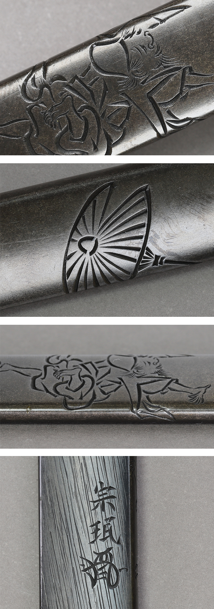 幕末の名工加納夏雄に「片切彫と云うことに就いては、未だ宗民の如く妙味を感ずる彫方は無し、片切彫と四分鑽とを混え用いて、一種妙絶の味を現したるがごときは、其意匠霊腕賞嘆すべき者也。」と絶賛されていることからも、片切彫の創始者として他の追随を許さない独歩の地位を確立していたことが分かります。
